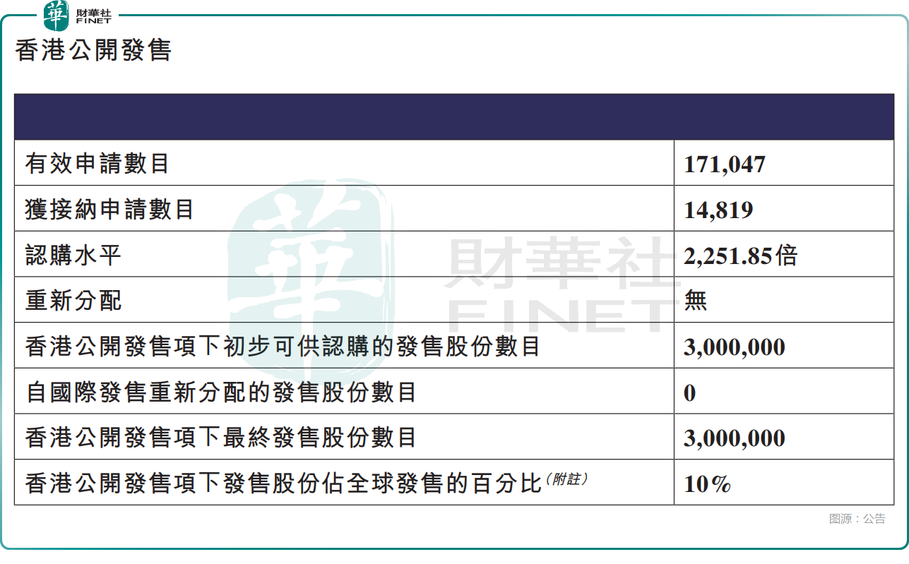 而從日前招股階段的表現來看,國恩科技的表現也不錯。公告顯示,香港公開發售方面,國恩科技獲2251.85倍認購,公開發售的發售股份最終數目為300萬股股份,占發售股份總數的10%。有效申請數目為17.10萬份,受理申請數目14819份。
