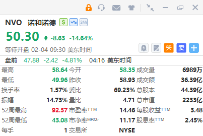 諾和諾德續跌近5%,隔夜大跌近15%,預計2026年銷售恐降13%;
