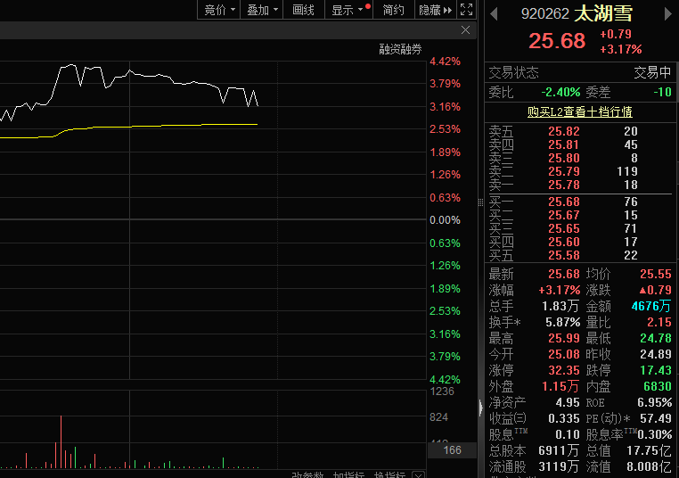 2月5日,太湖雪(920262)股價逆勢上漲。截至發稿,公司股價漲幅超3%。