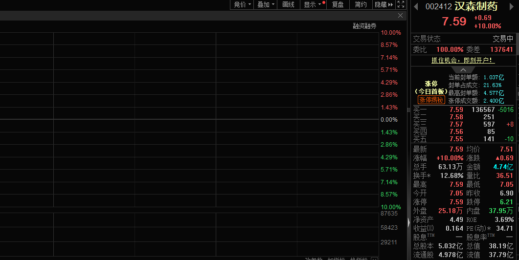 2月6日,中藥板塊集體大漲。個股方面,漢森製藥(002412)股價實現漲停。