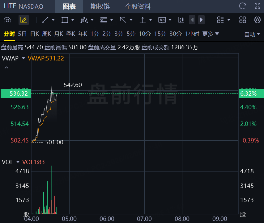 2月6日,美股光通信概念股盤前延續強勢,Lumentum漲超6%,Credo Technology、Astera Labs漲超5%,Coherent、康寧漲超3%。
