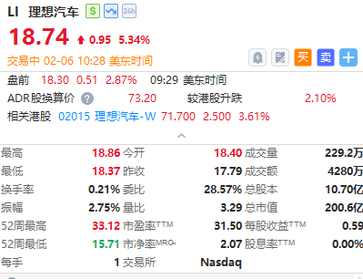 華盛資訊2月6日訊,熱門中概股集體上揚,新能源車企領漲,蔚來大漲近9%,1億次換電今日達成;