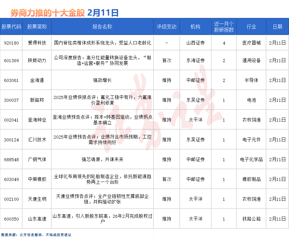 愛得科技最受券商關注,近一個月獲華金證券、開源證券、華源證券等4份券商研報關注,位居2月11日券商力推股榜首。