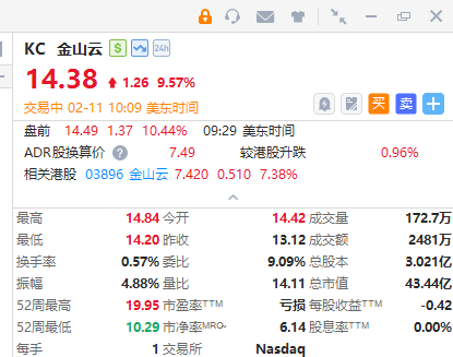 華盛資訊2月11日訊,金山雲大漲近10%,高盛稱公司顯著受惠於小米持續加碼AI;