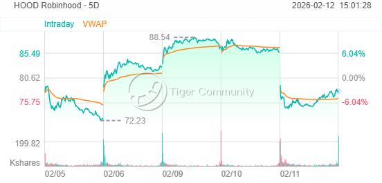 市場對這份“好壞參半”的財報反應偏負面。Robinhood(HOOD)股價在財報發佈後下跌8.9%,報收於41.30美元附近。儘管如此,該股過去12個月累計漲幅仍達36.1%,明顯跑贏同期S&P 500指數。