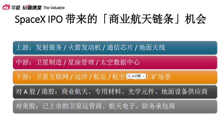 2、SpaceX IPO(預計2026年6月):估值1.5萬億美元,將帶動商業航天產業鏈(發射、衛星、地面設備)。