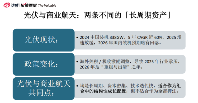 3、光伏 vs 航天:均爲長週期資本密集型賽道,2026年光伏處於出清重組期,航天處於擴張期。