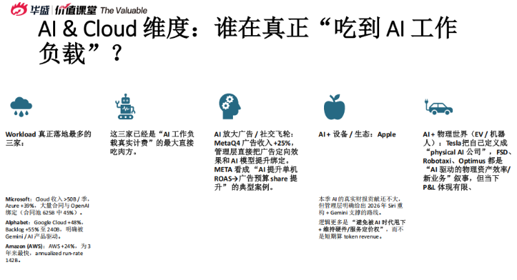 1、高質量自我供血型:Microsoft、Apple、Alphabet、Amazon(雲/AI拉動核心業務增長,利潤與CapEx平衡)。