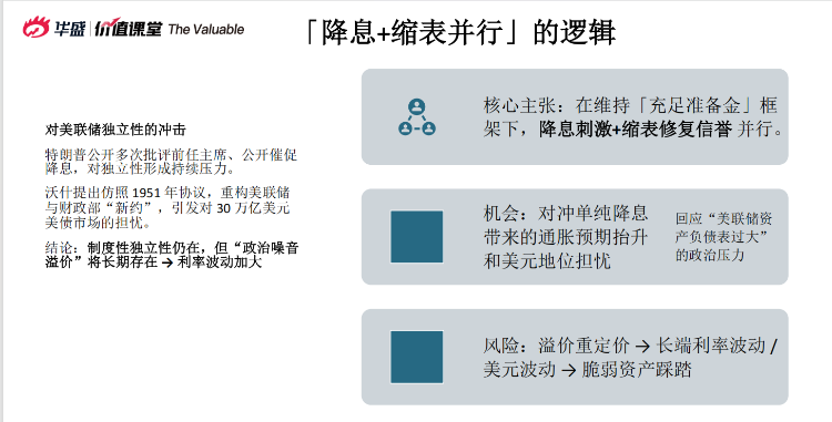 1、凱文·沃什(Kevin Warsh) 被市場視爲“鷹派”,主張 “降息+縮表並行”,引發市場對利率路徑和美元信譽的擔憂。
