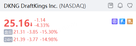 在線博彩公司DraftKings大跌近15%,業績指引不及預期;