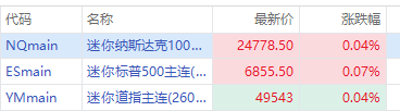 CPI數據公佈後,美股三大期指盤前齊漲,納指期貨 $NQmain 漲0.04%,標普500期貨 $ESmain 漲0.07%,道指期貨 $YMmain 漲0.04%