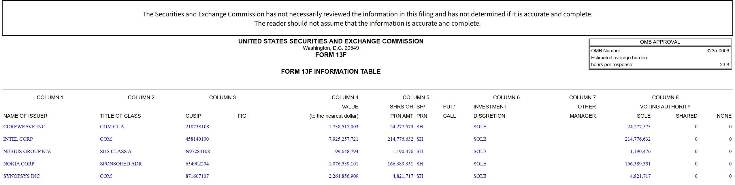 英偉達2025年四季度末持倉