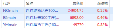 華盛資訊2月18日訊,美股三大期指盤前齊升,截止發稿,道指期貨 $YMmain 漲0.32%,納指期貨 $NQmain 漲0.55%,標普500指數期貨 $ESmain 漲0.46%。