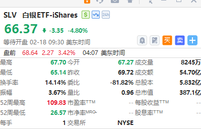 白銀ETF $SLV 漲超3%,現貨白銀日內漲超3%升至75美元上方。