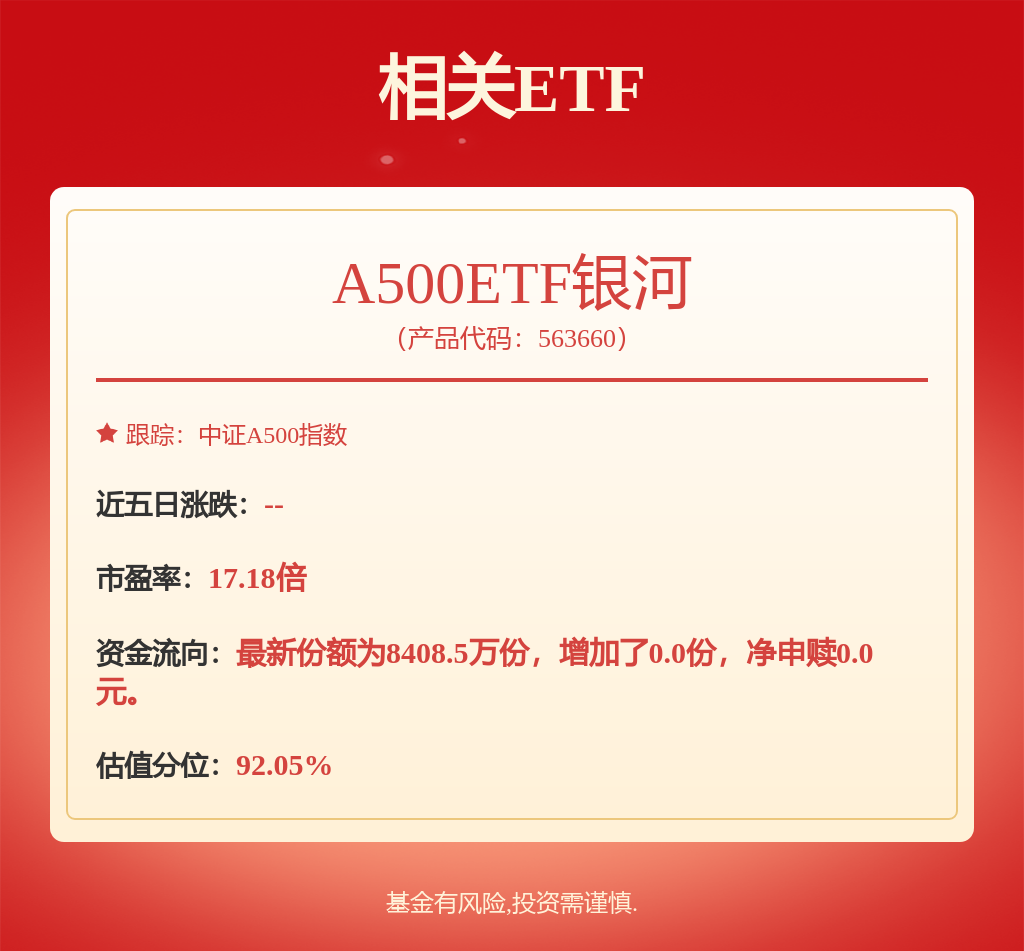 在此背景下,以 A500 指數爲代表的寬基核心資產指數備受關注。銀河基金身爲國內資產管理能力突出的老牌基金公司,深耕資管領域23載 。作爲銀河基金旗下緊密跟蹤中證 A500 指數的 ETF 產品,A500ETF 銀河 (563660) 更廣泛地覆蓋了具有成長潛力的公司,兼顧市值代表性與行業均衡性,且新質生產力成分佔比較高,爲投資者配置 A 股提供了便利。銀河中證A500ETF聯接基金(A類023949、C類023950)同樣爲廣大場外投資者提供“一鍵配置A股核心資產”的投資工具。