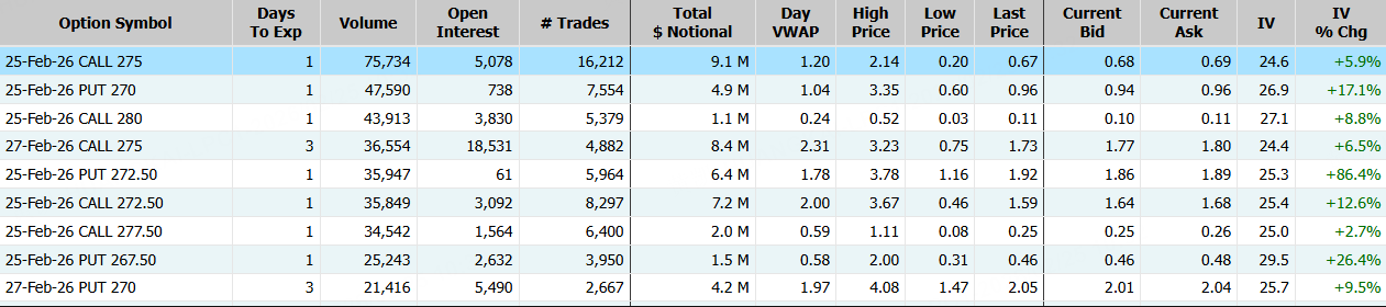 蘋果隔夜漲超2%,期權合約成交96.51萬張,2月25日到期的275美元的行權看漲期權交易量特別高,共有75,734份合約交易。