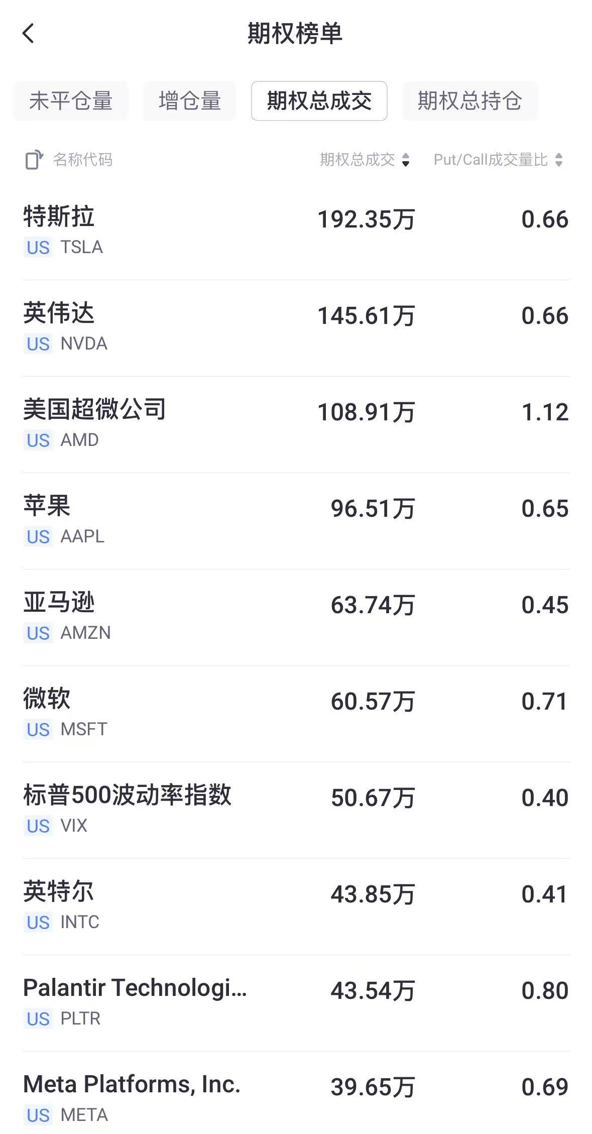 二、期權成交總量TOP10