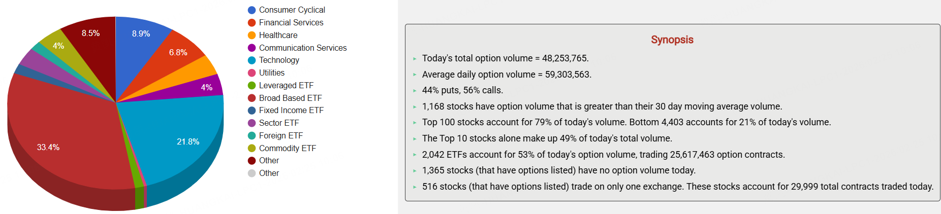 期權市場總成交量48,253,765張合約,其中看漲期權佔比56%。