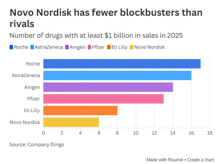 這家丹麥公司業務多元化程度不及當前及未來的競爭對手,並且日益依賴美國市場,而美國的藥品價格正在迅速下降。