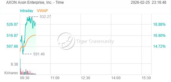 Axon Enterprise股價飆升逾18%,這家以生產泰瑟槍、執法記錄儀和無人機著稱的企業,因人工智能加速推動其軟件產品需求,第四季度業績超越華爾街預期。