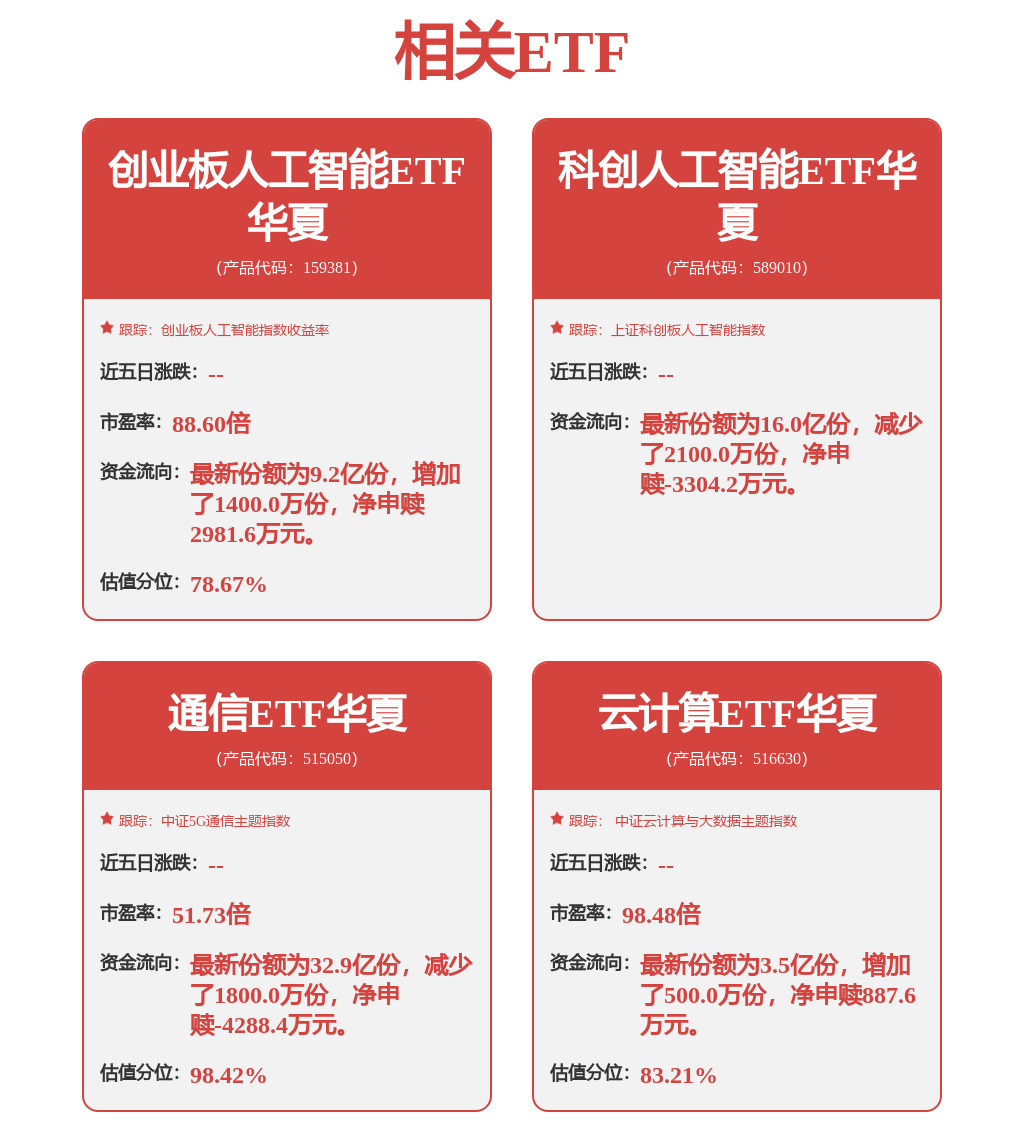 2月26日,三大股指早盤小幅走低,而創業板人工智能指數逆勢上行。截至上午10:47,創業板人工智能ETF華夏(159381)漲2.15%,相關持倉股方面,潤澤 科技漲13.88%、天孚通信漲9.84%,新易盛、中際旭創、藍色光標等小幅跟漲。(以上所列股票僅爲指數成份股,無特定推薦之意)