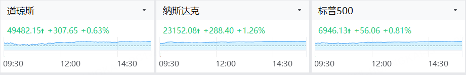 週三(2月25日),美股三大指數集體上漲。截至收盤, 標普500指數漲0.81%,報6946.13點;納斯達克綜合指數漲1.26%,報23152.08點;道瓊斯指數漲0.63%,報49482.15點。