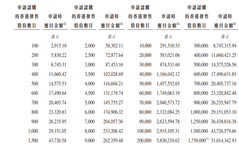乙組門檻爲20萬股,申購所需資金約583.02萬港元。