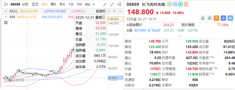 長飛光纖光纜港股股價較去年底接近翻兩倍,資金追捧熱度可見一斑。