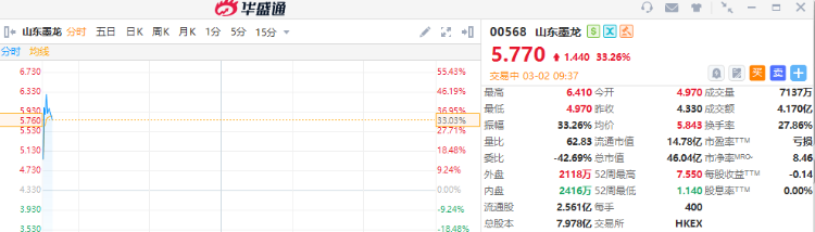 華盛資訊3月2日訊,港股有色金屬、石油、海運股盤初走高!赤峯黃金漲近6%,山東黃金漲超3%,紫金礦業漲近3%;山東墨龍飆漲超33%,“三桶油”中國海洋石油漲超5%,中國石油股份漲近4%,中國石油化工股份漲近3%;中遠海能漲超7%。