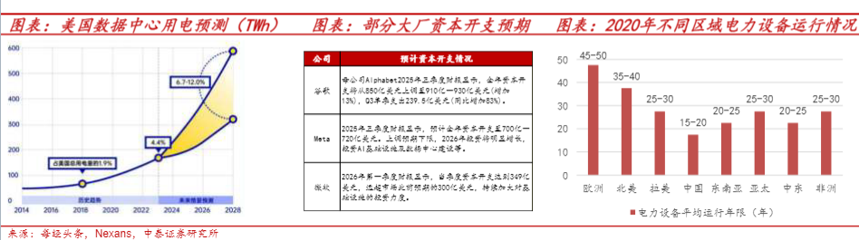 這一缺口的背後,是AI數據中心對電力的飢渴需求。根據IEA預測,2024至2030年全球數據中心用電量將從約4150億千瓦時增長至9450億千瓦時,複合增速約15%。AI超大規模數據中心容量可達100兆瓦或更高,年耗電量相當於十萬戶家庭用電規模。美國電網的老化與體制分散進一步加劇電力缺口——2024年美國僅建成55.5英里高壓輸電線路,創2010年以來最低水平。