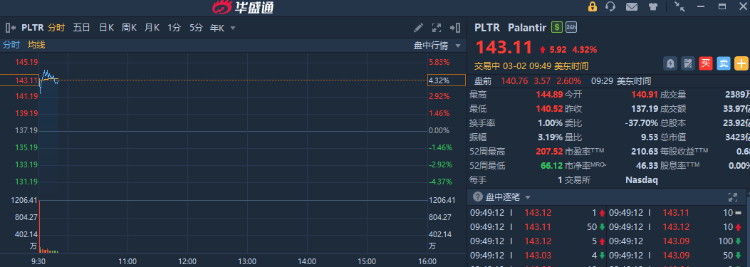 Palantir盤中一度漲逾5%,現漲逾4%,美媒曝美國在空襲伊朗時使用Anthropic技術。