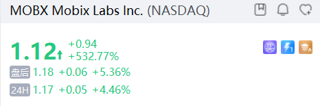 半導體初創公司Mobix Labs續漲4%,上一交易日暴漲532%;