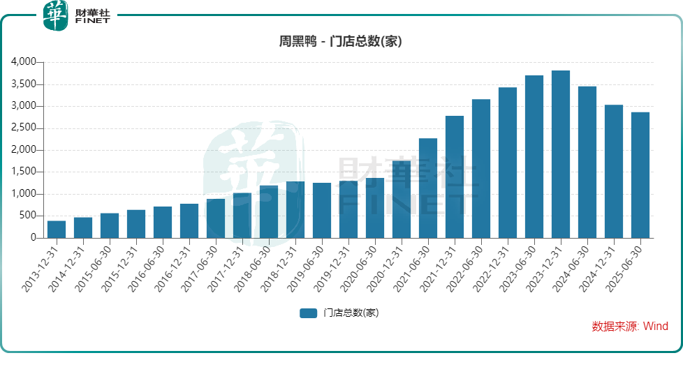 行業變天的那幾年時間中,周黑鴨面臨增長挑戰,收入和利潤持續波動。在這期間,公司依然保持擴張,門店數量一度突破3800家,但規模增長並未帶來相應的利潤提升,陷入「規模不經濟」的困境。