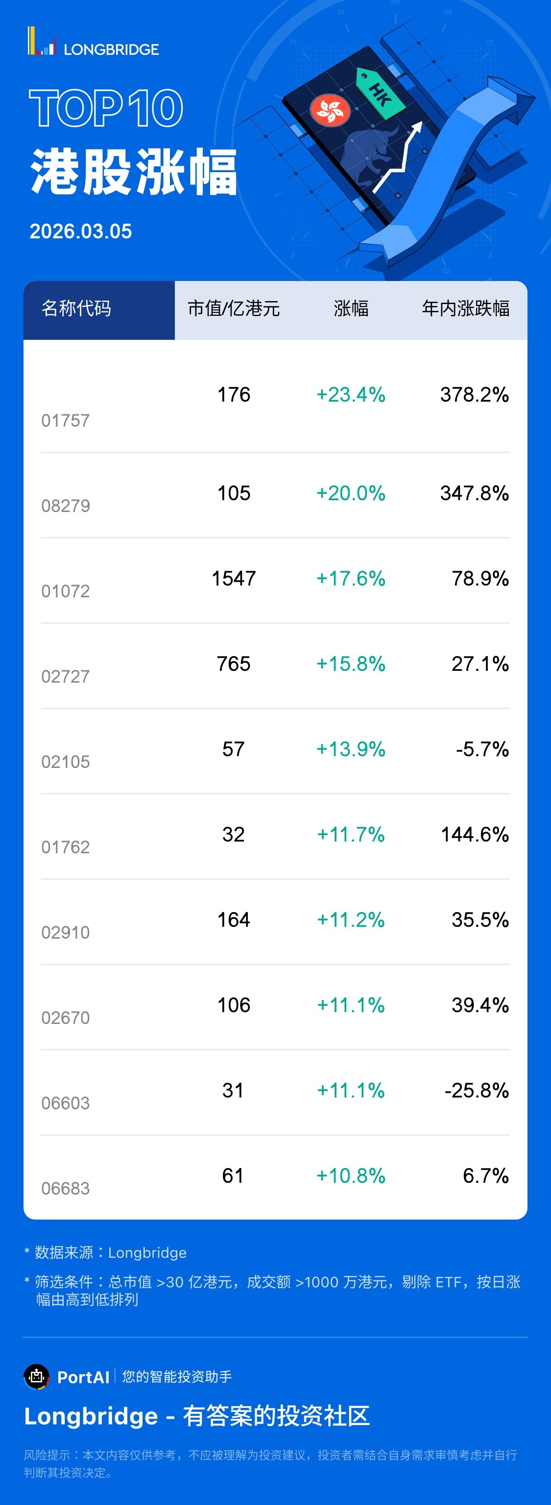 環球華商俱樂部 (01757) 漲 23.36%,成交額 1697.0 萬港元,年內累計漲 378.2%。