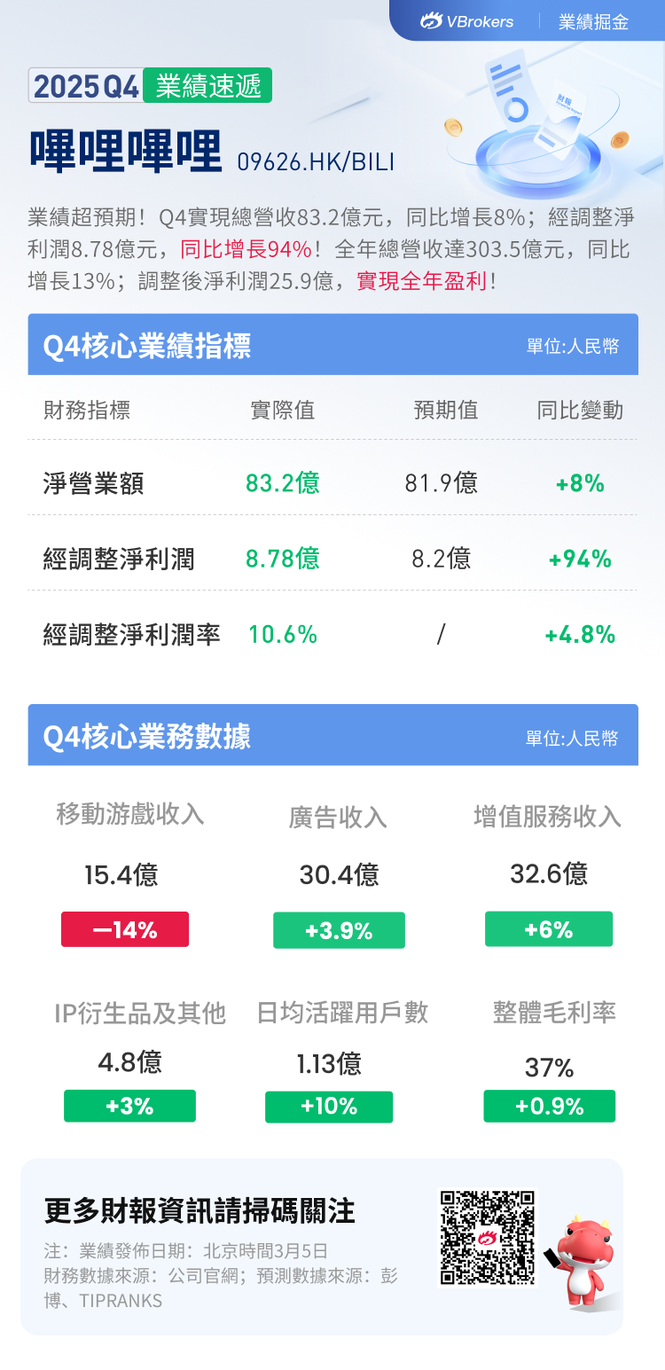🎦點擊直播:【3月5日 20:00直播】嗶哩嗶哩 (09626.HK,BILI.US) 2025年第四季度業績電話會