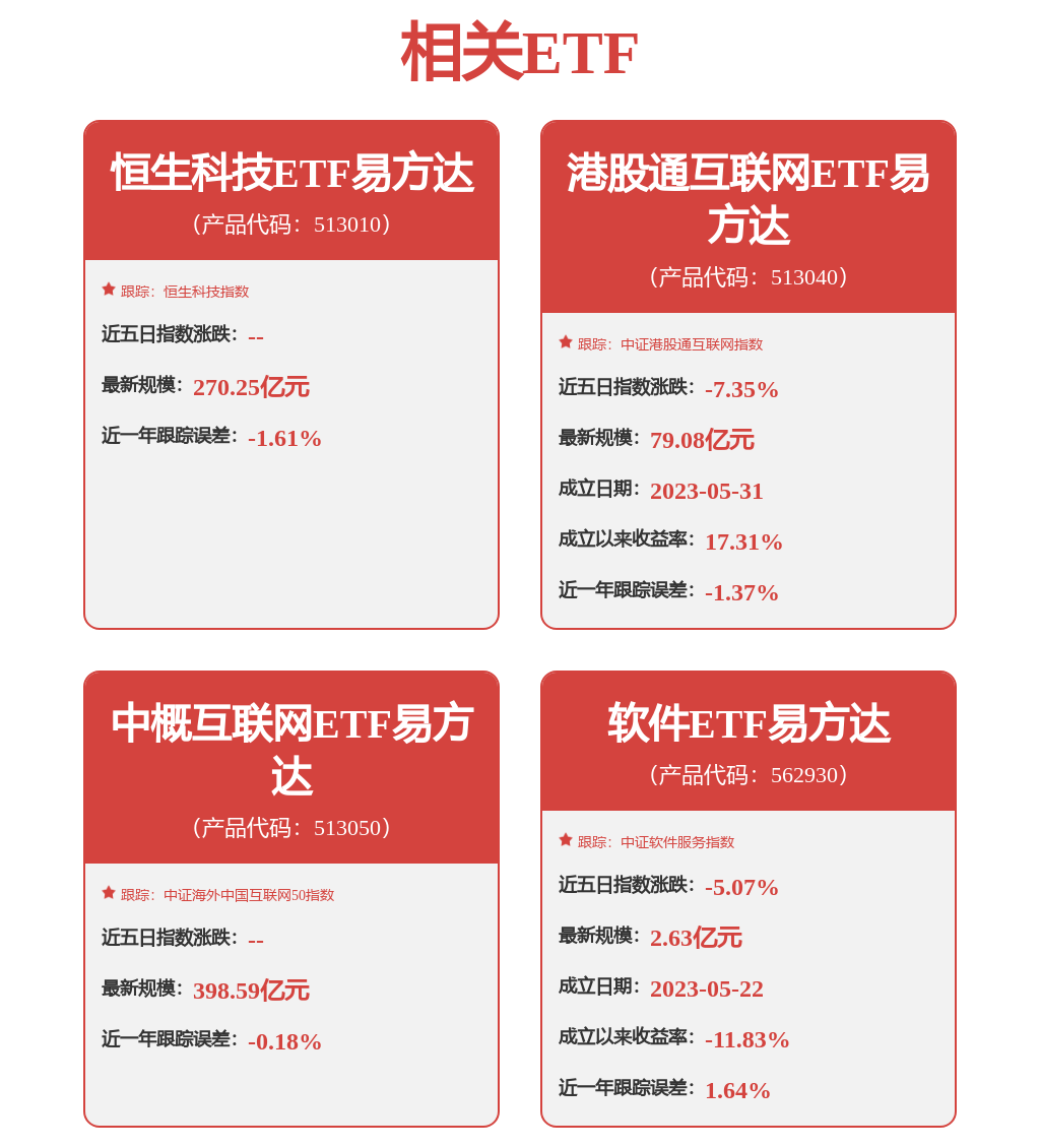 目前市場上有恒生科技ETF易方達(513010)、港股通互聯網ETF易方達(513040)等產品跟蹤以上指數,可助力投資者便捷佈局港股科技板塊,其中恒生科技ETF易方達(513010)已連續18個交易日獲資金淨流入,合計超50億元。