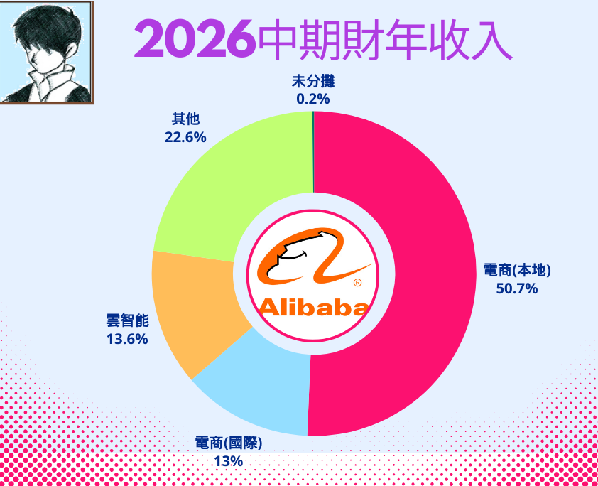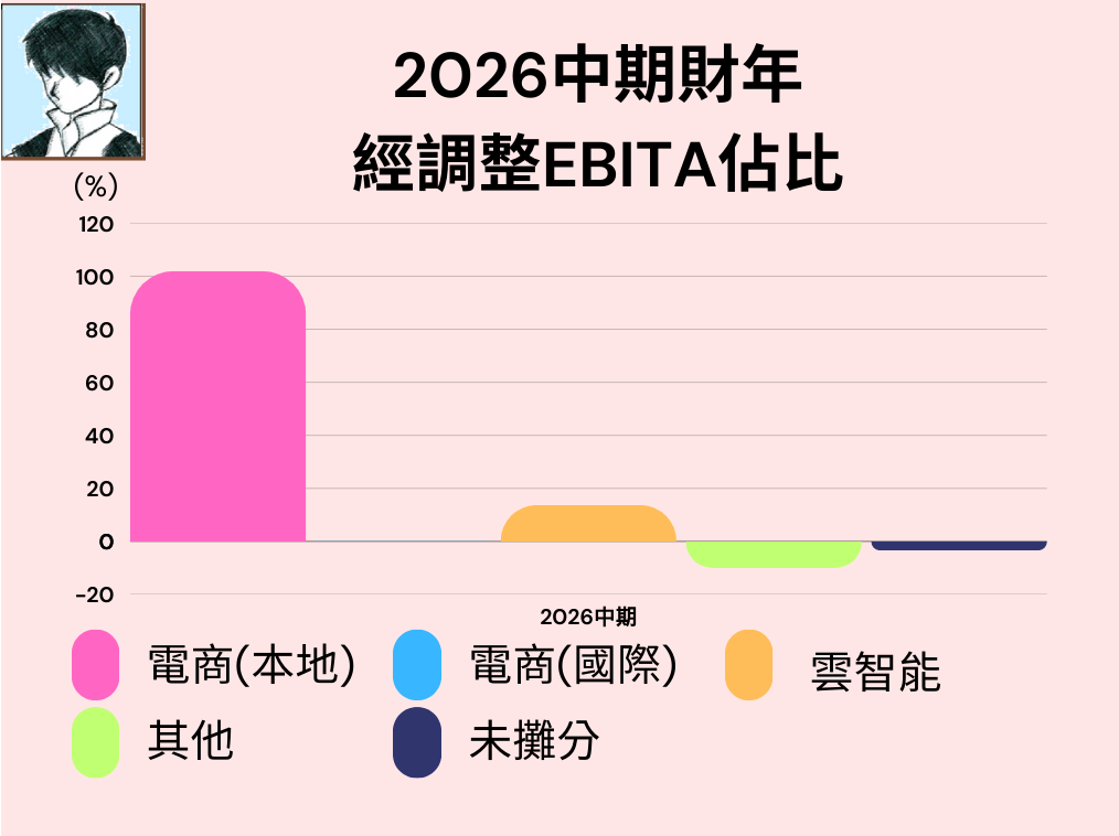 國際電商、雲智能及其他分部佔餘下部分。