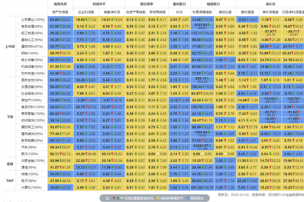 行業財務指標同比變動