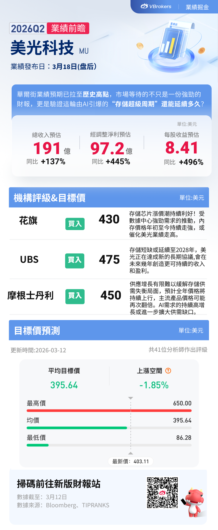 花旗維持對美光科技的“買入”評級,並在該公司公佈季度業績前將該股的目標價從385美元上調至430美元,理由是內存價格飆升和人工智能需求旺盛。