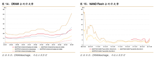 TrendForce預計,2026Q1 DRAM合約價將有90%-95%的環比漲幅;2026Q1 NAND Flash合約價將有55%-60%的環比增幅,且不排除仍有進一步上修的空間。