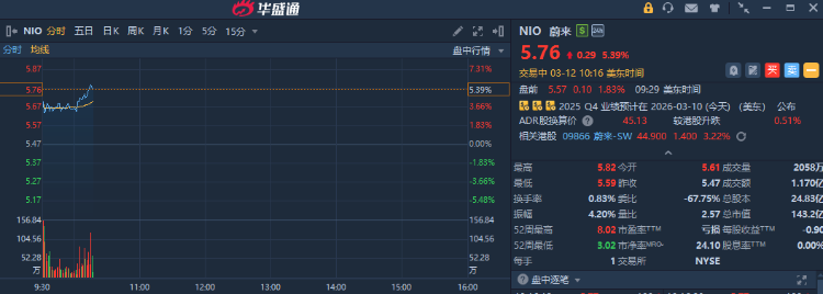 新能源汽車股普遍走強,蔚來盤中大漲超5%,此前瑞銀看多新能源車,稱油價波動令電動車總持有成本變吸引。