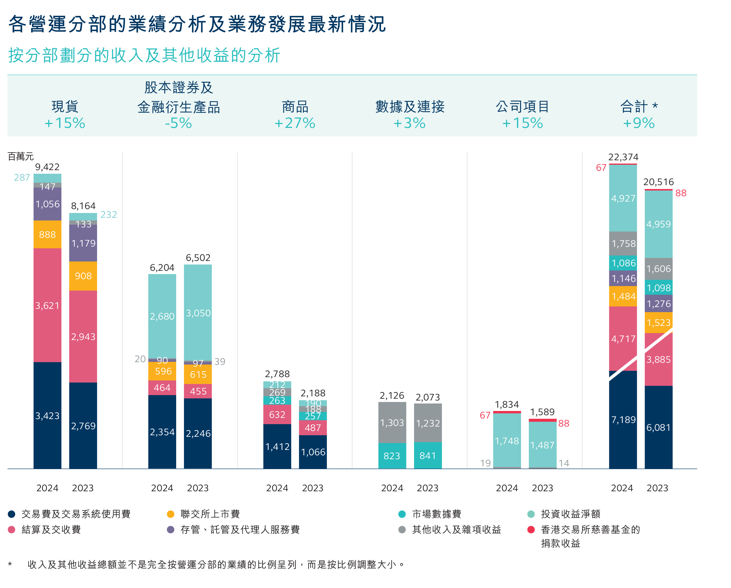 港交所擁有的聯交所及期交所,是香港唯一認可的證券及期貨市場,雖然擁有海外業務,但主要的收入來源仍是港股,港股每天的成交、新上市公司的多寡及其相關,都是港交所主要收入來源。