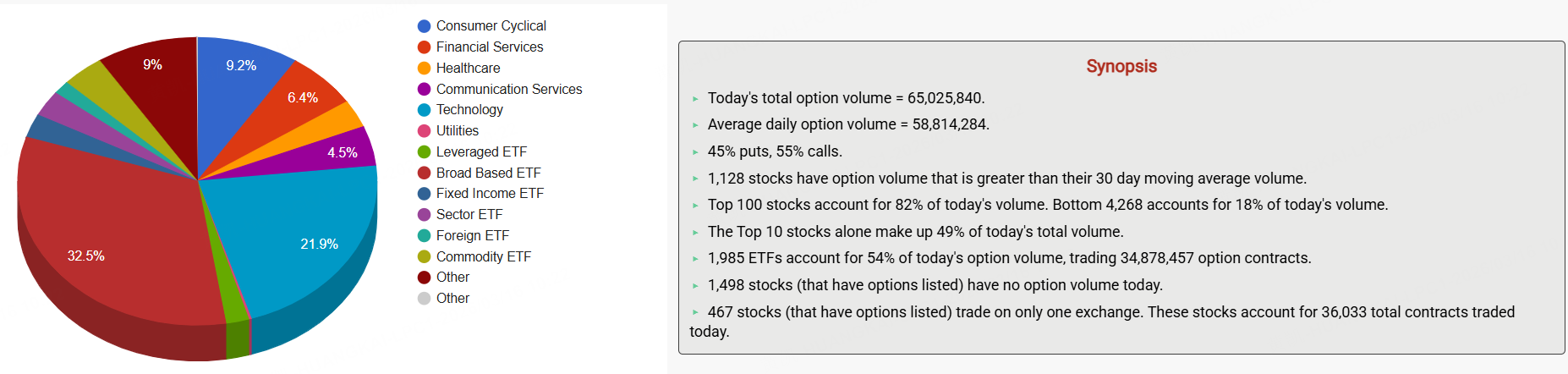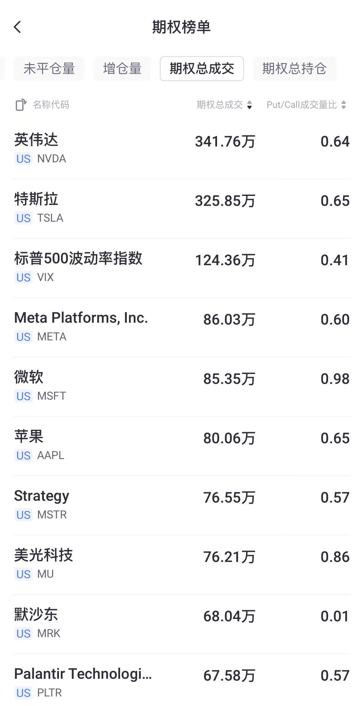 期權市場總成交量65,025,840張合約,其中看漲期權佔比55%。