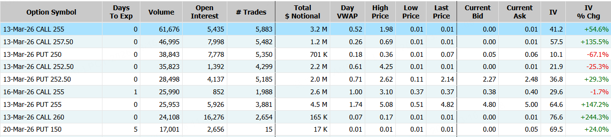 蘋果上週五收跌2.21%,期權合約成交80.06萬張,3月13日到期的255美元的行權看漲期權交易量特別高,共有5,435份合約交易。