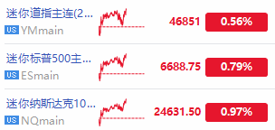 盤前,美股三大期指普漲,納指期貨 $NQmain 漲0.97%,標普500期貨 $ESmain 漲0.79%,道指期貨 $YMmain 漲0.56%。