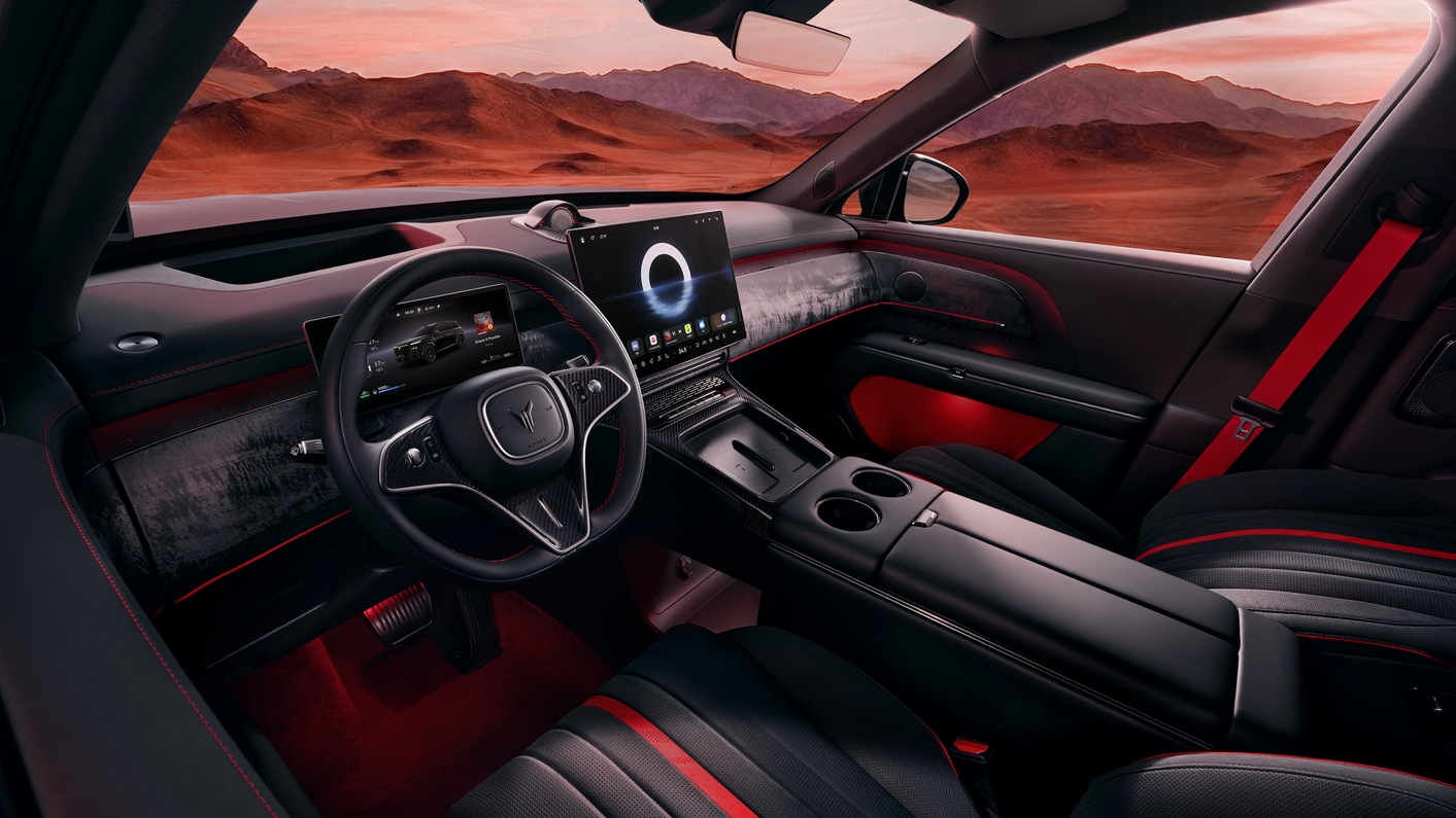 內飾上,以“丹墨”配色營造熱血氛圍,配合“流雲墨韻”飾板與手工編織的598顆燈珠“星河天幕”星空頂,共同構建了一個既熱血又沉靜的移動空間。定製開發的甲冑絎縫座椅與頂級NVH靜謐性,讓“中式豪華”深入到感官享受與情感共鳴的每一個細節中。