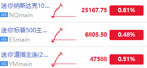 華盛資訊3月18日訊,美股三大期指普漲,納指期貨 $NQmain 漲0.61%,道指期貨 $YMmain 漲0.51%,標普500指數期貨 $ESmain 漲0.48%。