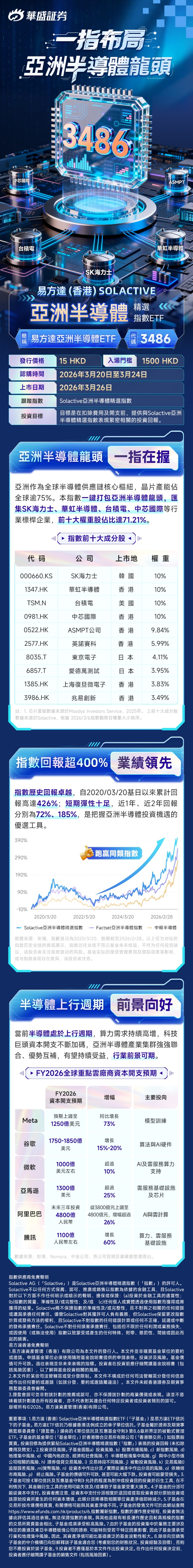 亞洲作爲全球半導體供應鏈核心樞紐,芯片產能佔全球 75%。當前半導體處於上行週期,算力需求持續高增,科技巨頭資本開支不斷加碼,亞洲半導體產業集羣強強聯合、優勢互補,板塊受益全產業鏈漲價潮,及 AI 算力需求強勁支撐,有望持續受益,行業前景可期。