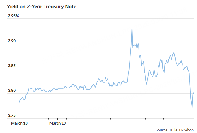 週四早些時候,2年期美國國債收益率一度躍升至接近3.96%,超過了美聯儲的利率目標區間。