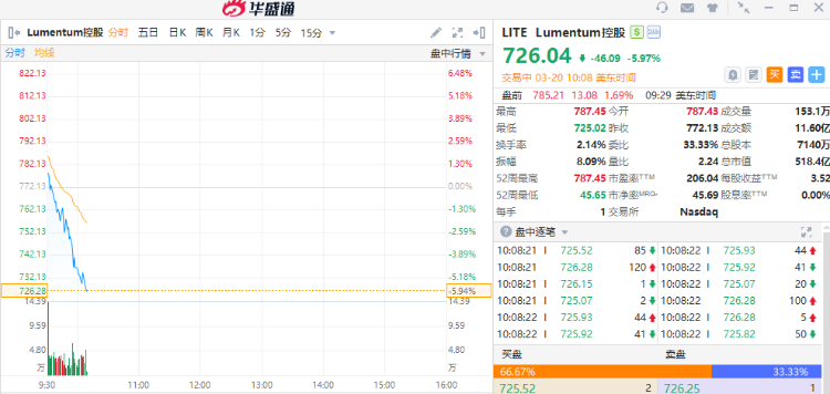 華盛資訊3月20日訊,美股三大指數低開低走,納指跌幅擴大至超1%;光通信概念股齊下挫, $COHR 、應用光電、Lumentum控股均跌超5%。